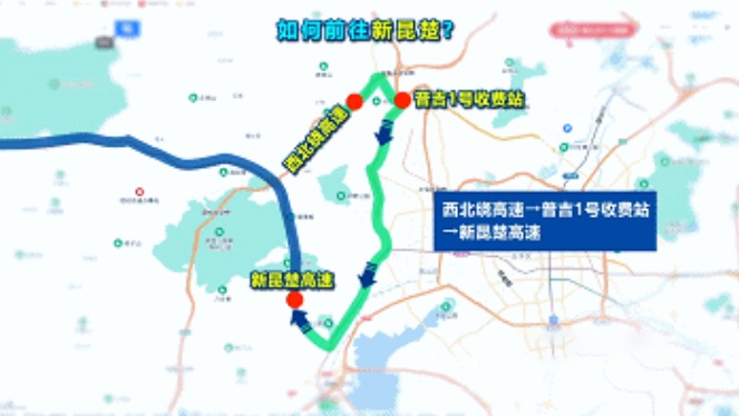 值得注意的是,如果走新昆楚高速从楚雄返回昆明,前往昆明西北市区的车辆,经西北绕枢纽立交进入昆明绕城高速公路西北段,可从普吉4号收费站下高速;前往昆明北市区的车辆,需经西北绕枢纽立交进入昆明绕城高速公路西北段,从茨坝或九龙收费站下高速。